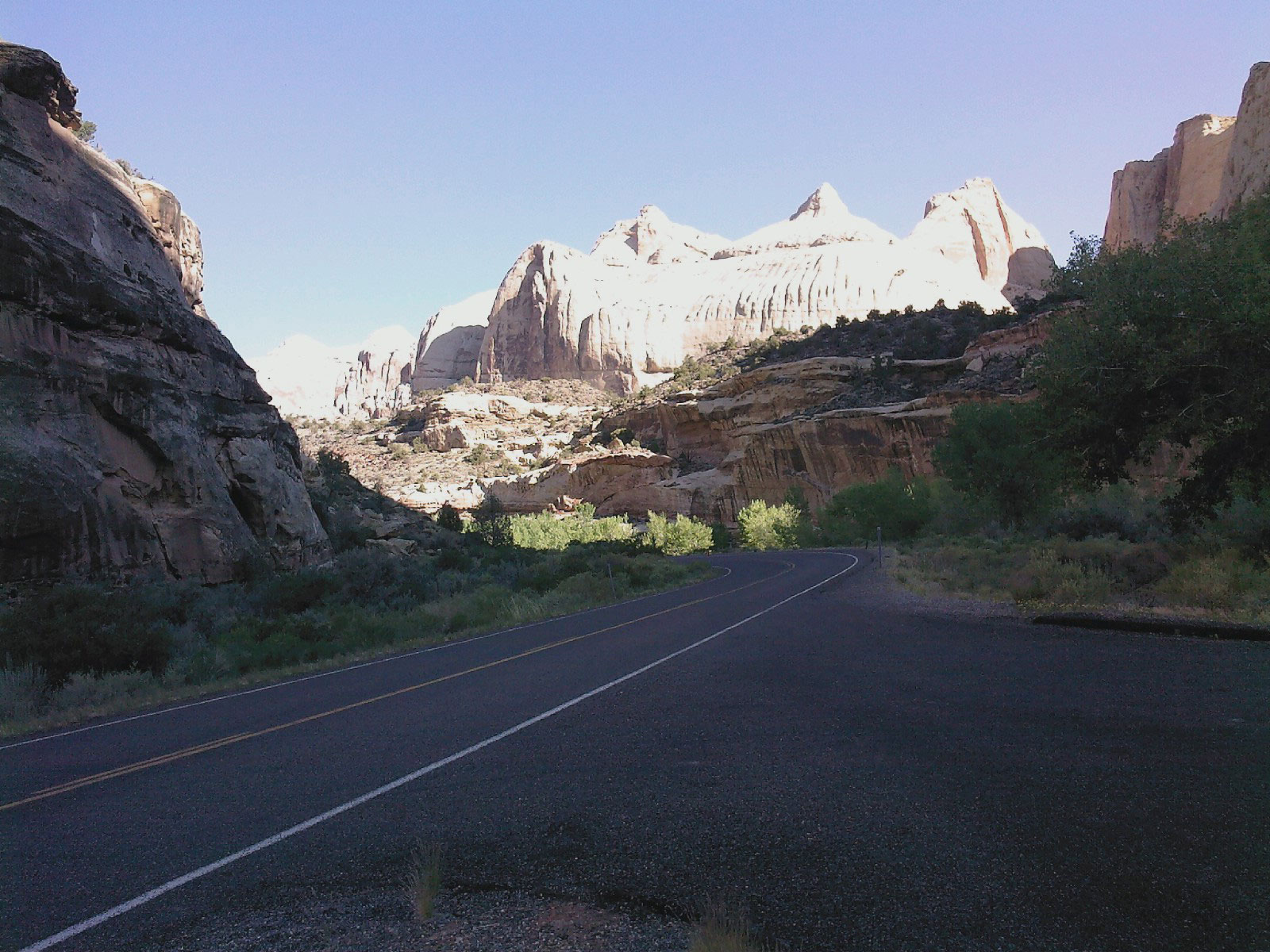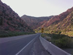 The Hogback - a narrow road along a ridge without shoulder or guardrail, and long drops on both sides